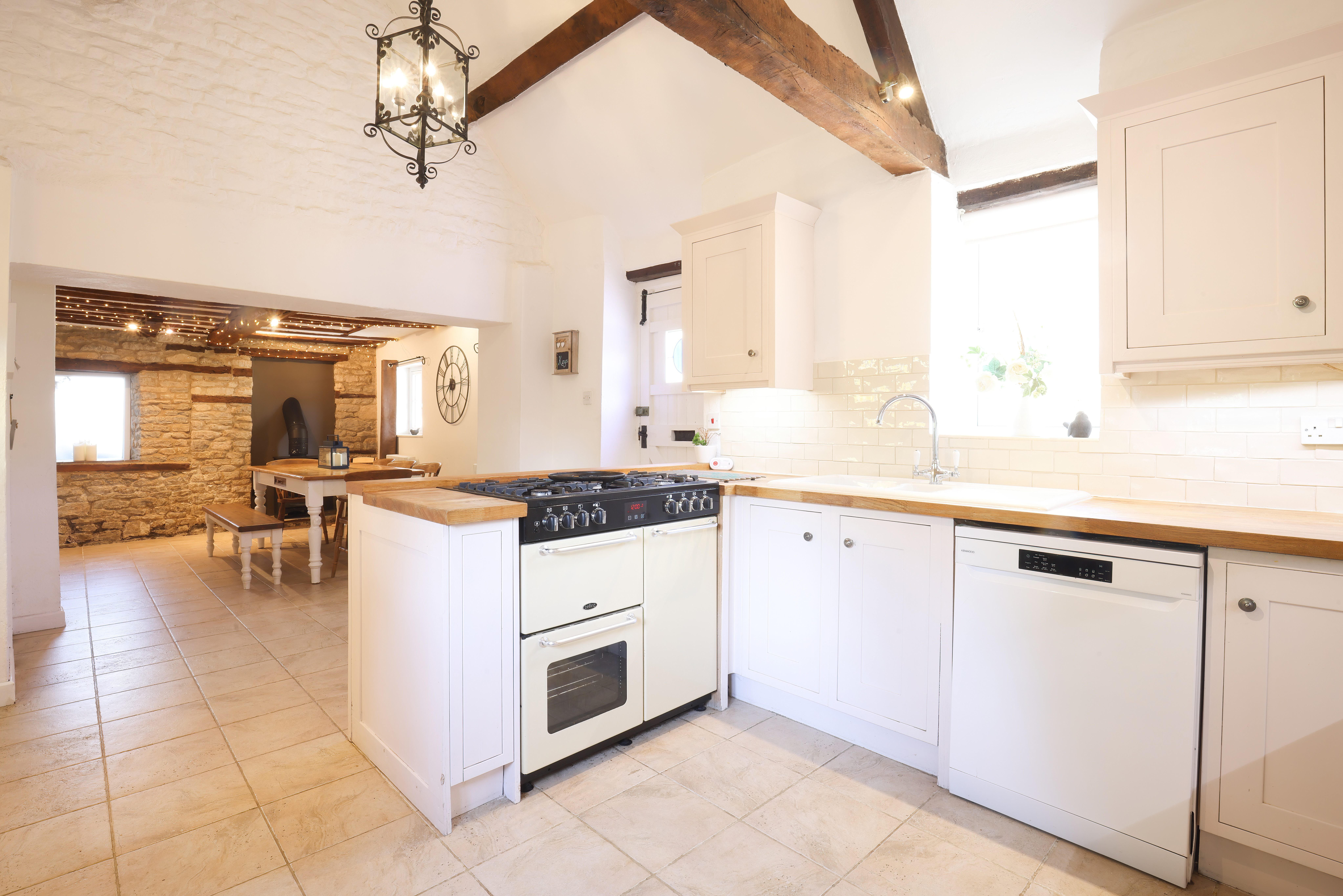 This spacious home exudes character with its distinctive layout, retaining many of its original feature walls and beams. Each bedroom offers the option of a super-king or twin bed configuration, making it versatile for all guests.